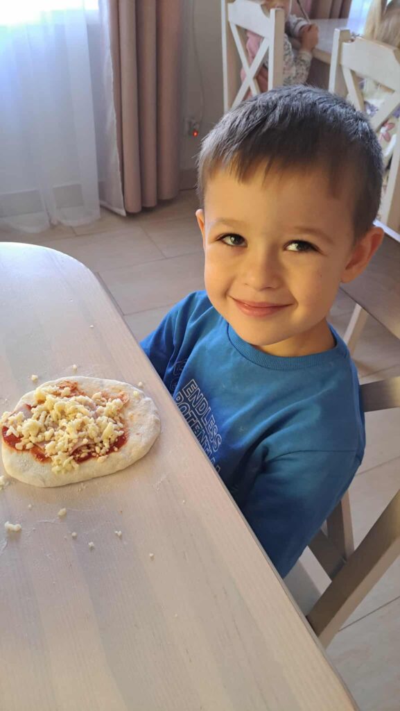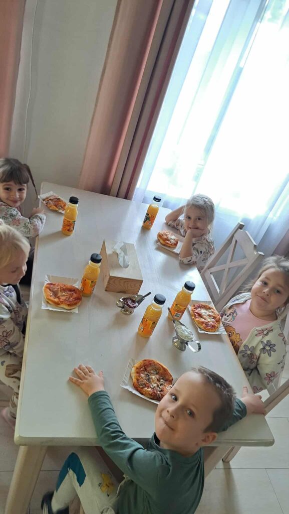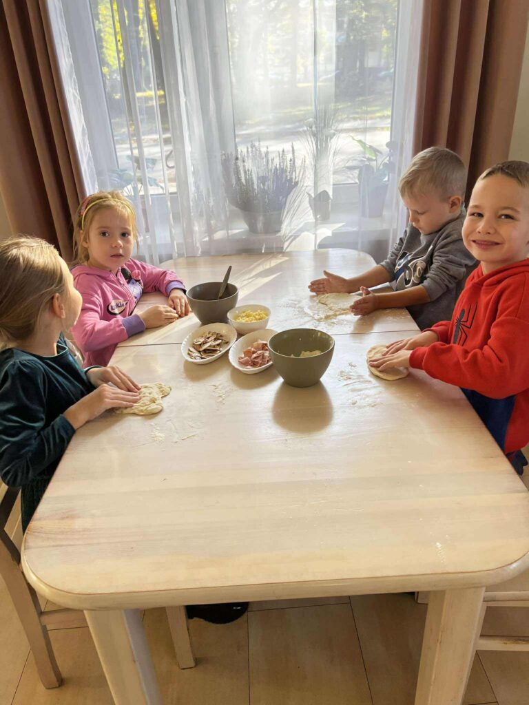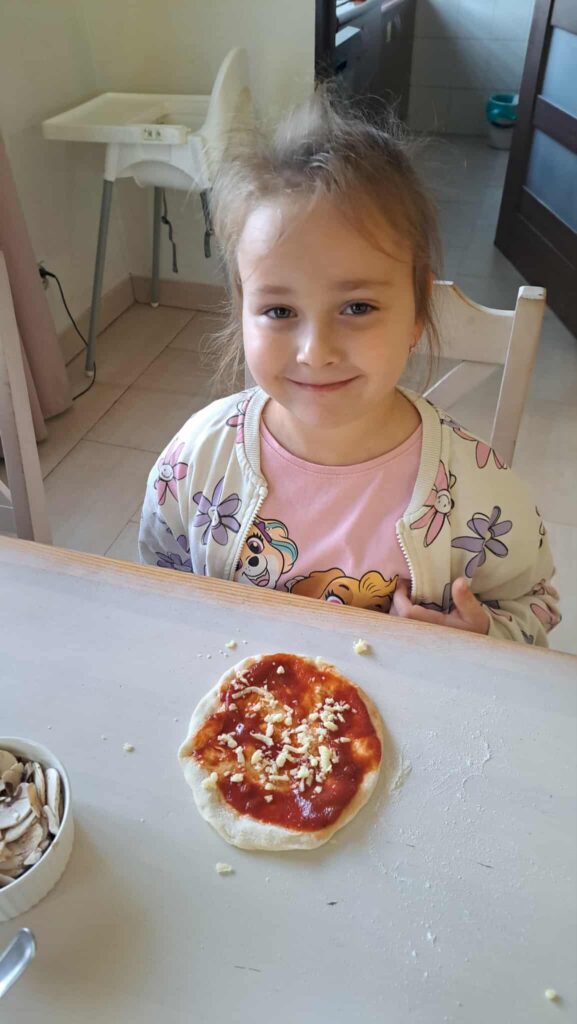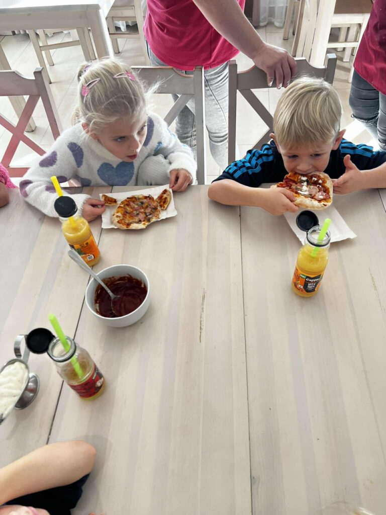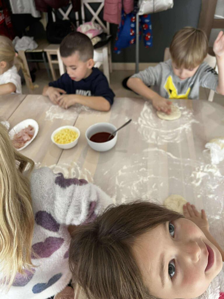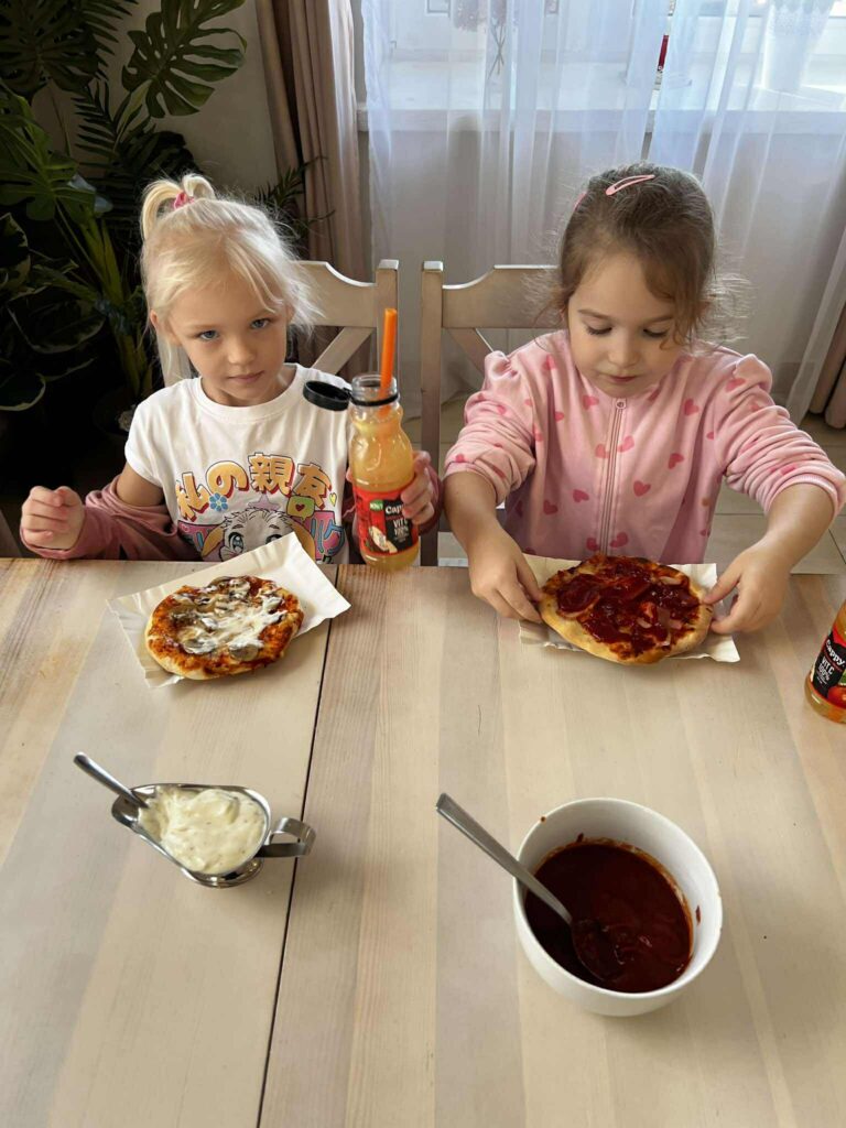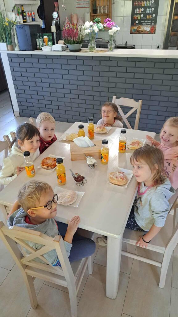 Największą radość sprawiła dzieciom degustacja własnoręcznie przygotowanych pizzerinek. Dumne uśmiechy na twarzach uczestników były najlepszym dowodem na to, że nauka przez działanie i zabawę to prawdziwa przyjemność!