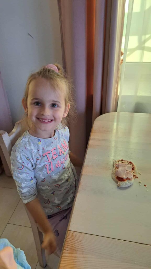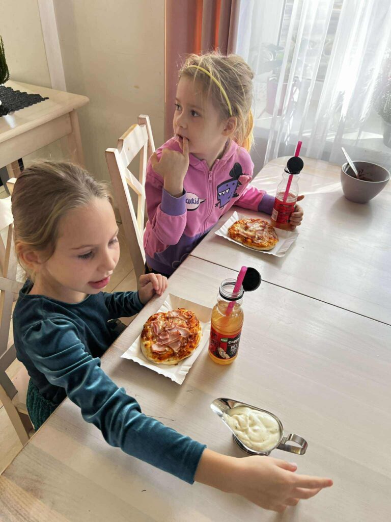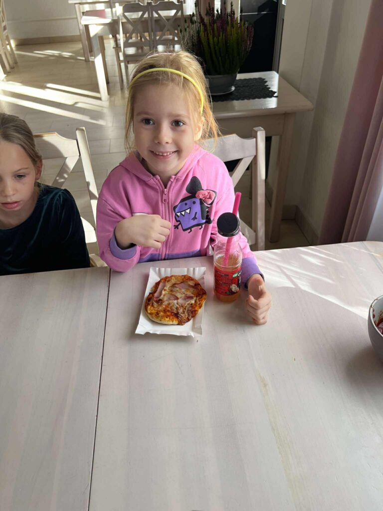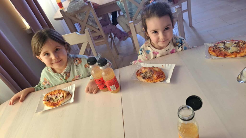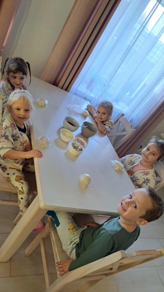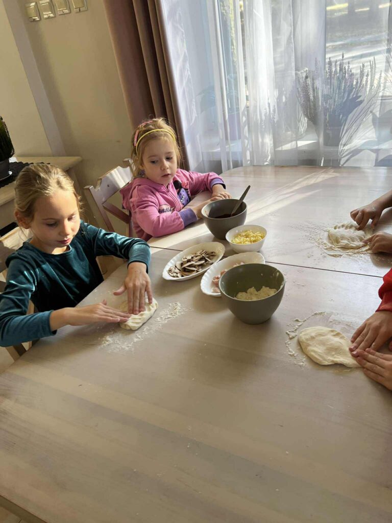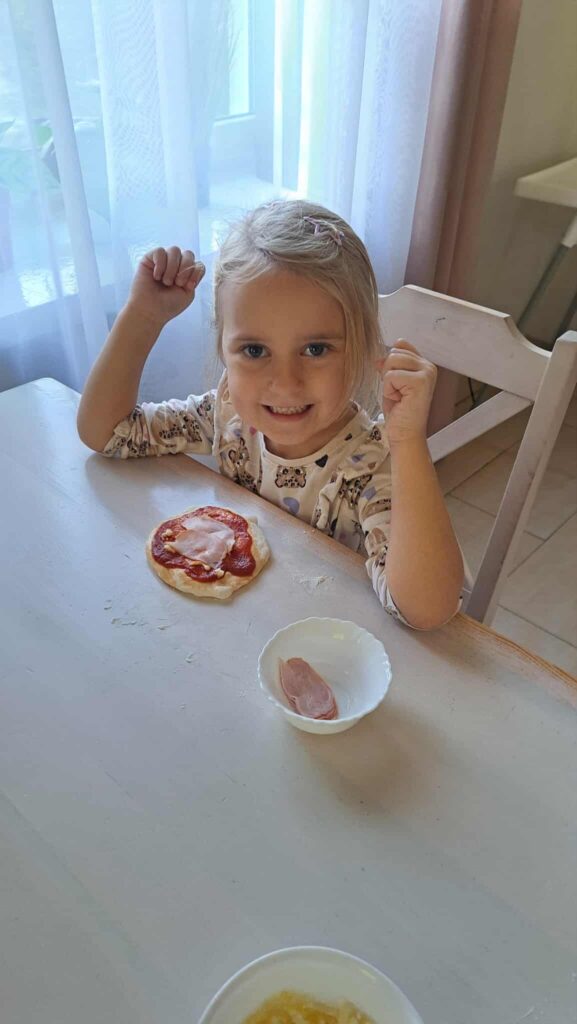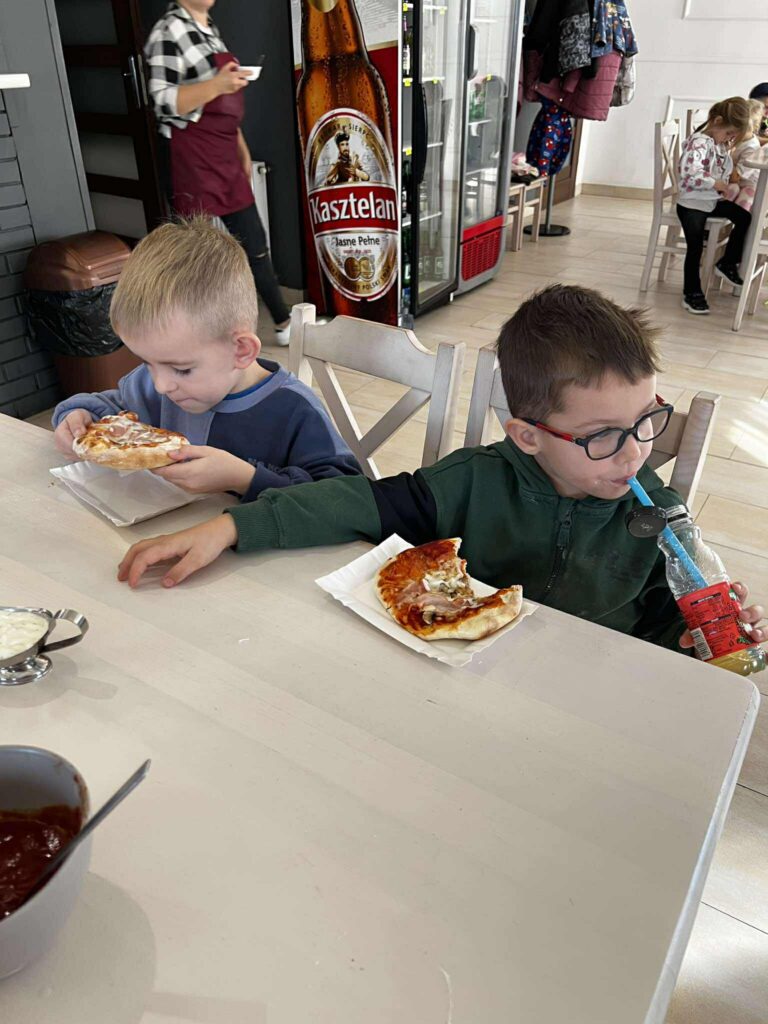 Największą radość sprawiła dzieciom degustacja własnoręcznie przygotowanych pizzerinek. Dumne uśmiechy na twarzach uczestników były najlepszym dowodem na to, że nauka przez działanie i zabawę to prawdziwa przyjemność!