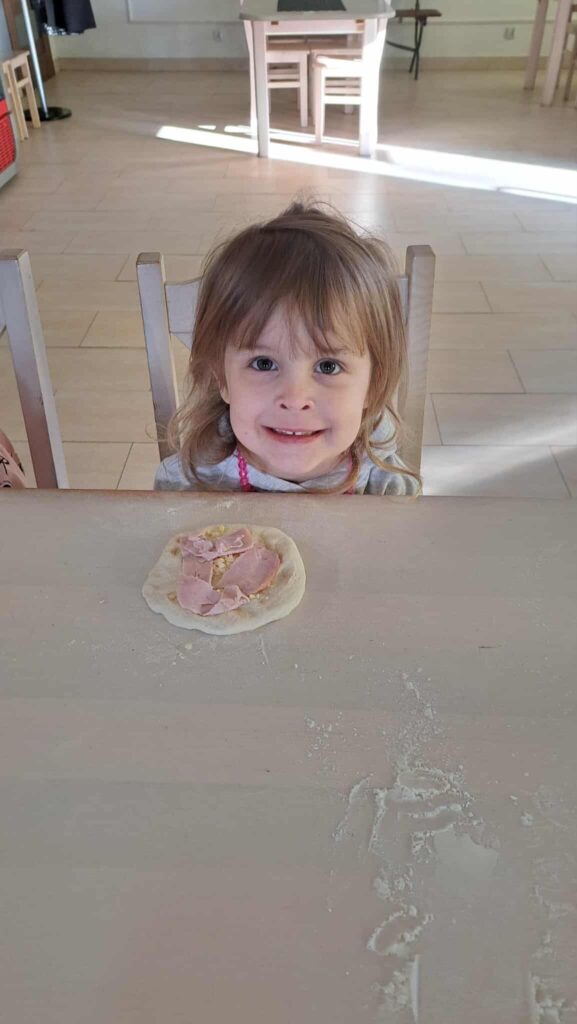 20 i 21 października 2025 r. dzieci z grup „Misie” i „Tygrysy” wzięły udział w wyjątkowych warsztatach kulinarnych w pizzerii „Cztery Pory Roku” w Radzanowie. Podczas zajęć przedszkolaki wcieliły się w rolę prawdziwych kucharzy – samodzielnie wyrabiały ciasto, formowały swoje mini pizze oraz ozdabiały je ulubionymi składnikami.
