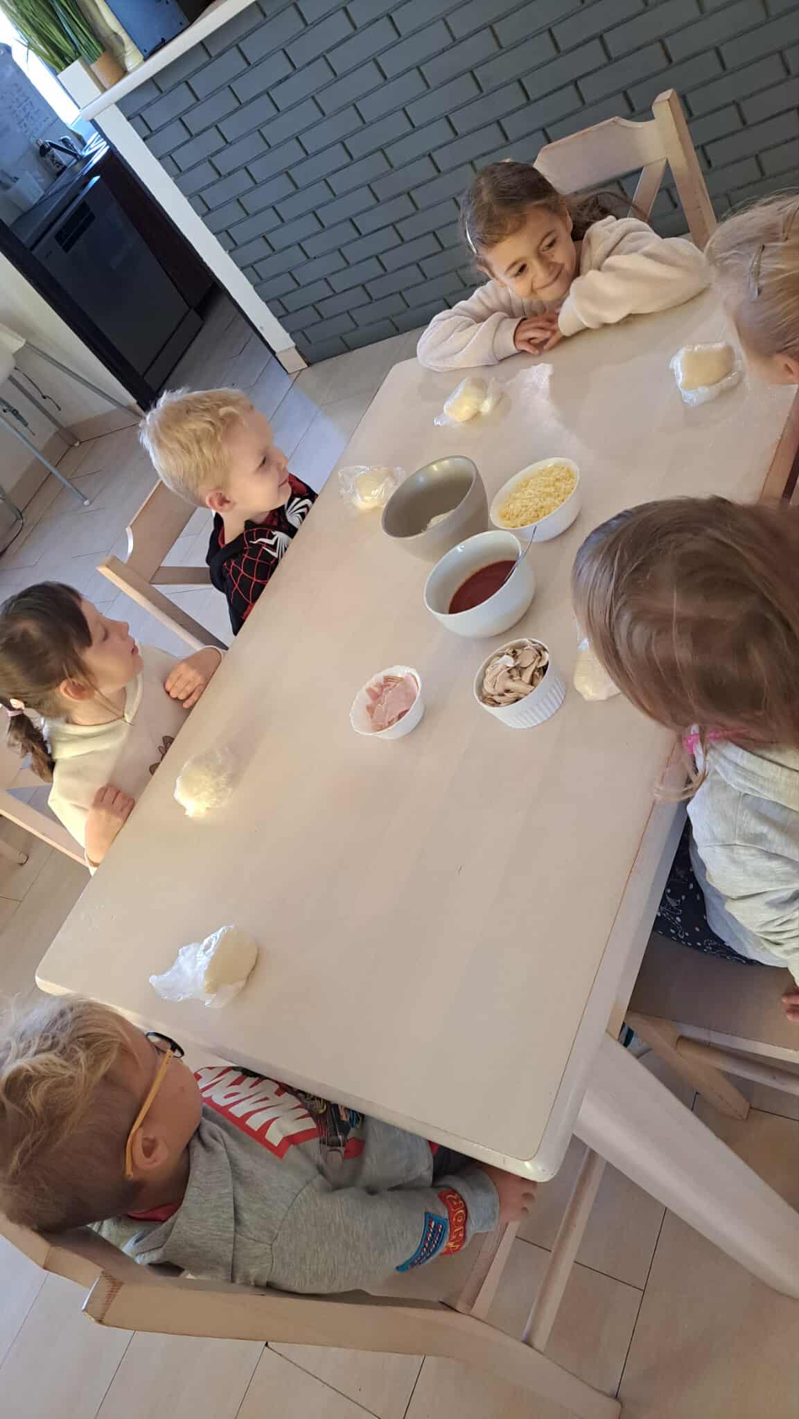 Największą radość sprawiła dzieciom degustacja własnoręcznie przygotowanych pizzerinek. Dumne uśmiechy na twarzach uczestników były najlepszym dowodem na to, że nauka przez działanie i zabawę to prawdziwa przyjemność!