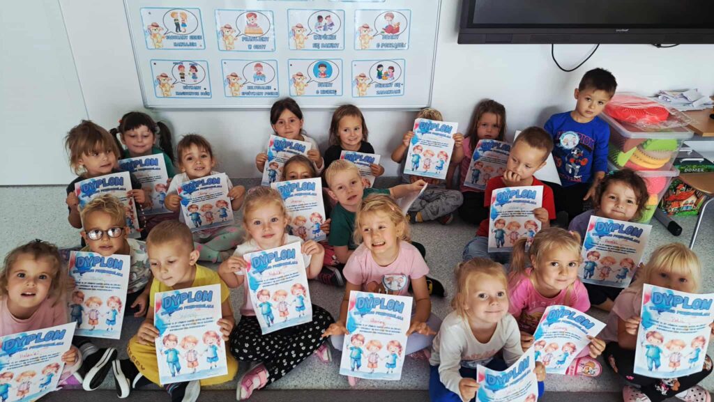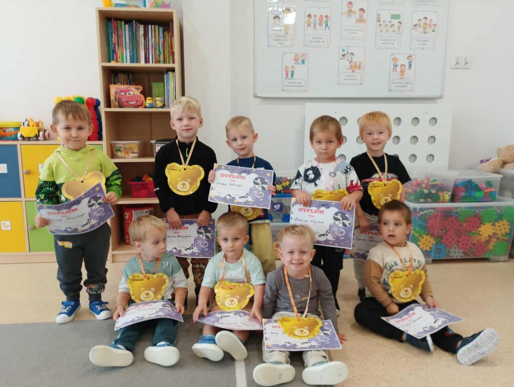 Ten wyjątkowy dzień minął naszym przedszkolakom w atmosferze radości, przyjaźni i wspólnej zabawy. Były balony, tańce, gry ruchowe, praca w grupach, a na zakończenie każdy otrzymał medal i dyplom wzorowego przedszkolaka!
