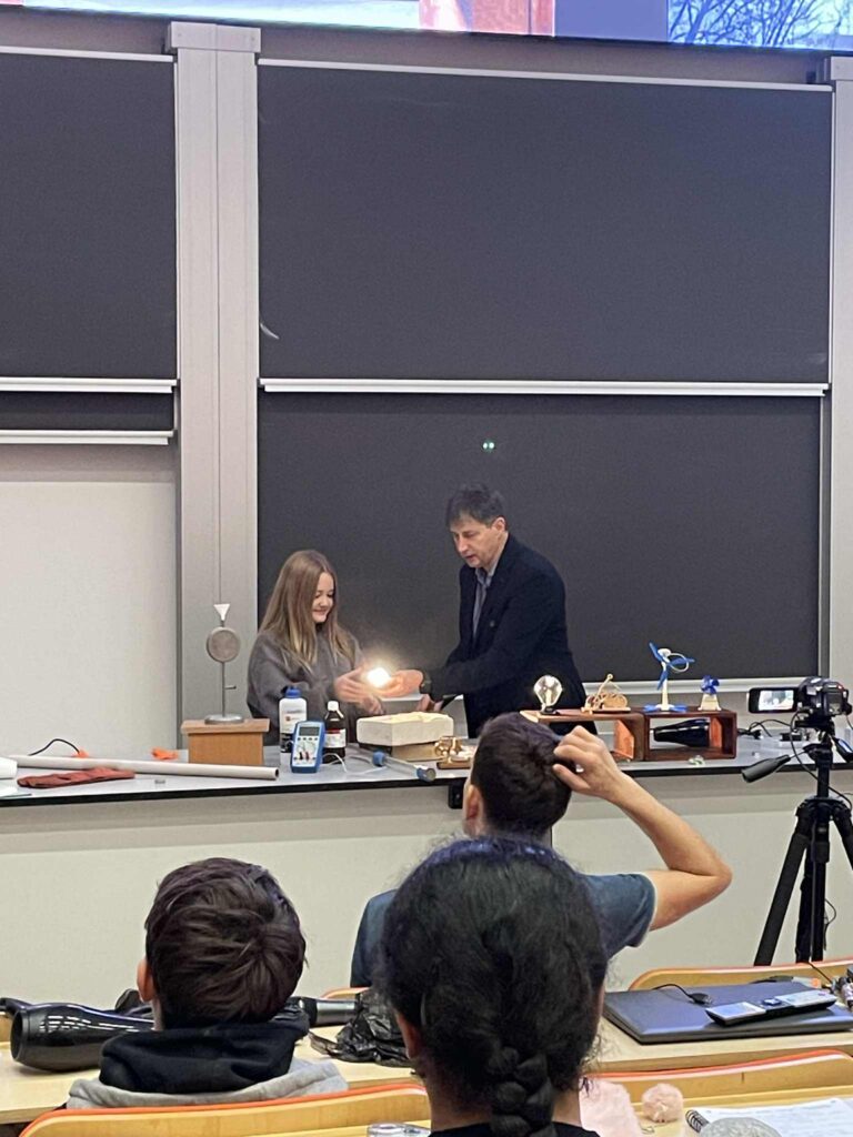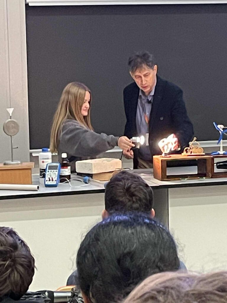Podczas wykładu poznaliśmy perspektywy rozwoju alternatywnych źródeł energii, takich jak energia jądrowa, termojądrowa, słoneczna, wiatru, wody czy geotermalna. Wykład był ilustrowany ciekawymi pokazami, w których mogliśmy sami uczestniczyć. Dowiedzieliśmy się również, jak ważne jest oszczędzanie energii i jakie proste działania mogą w tym pomóc.