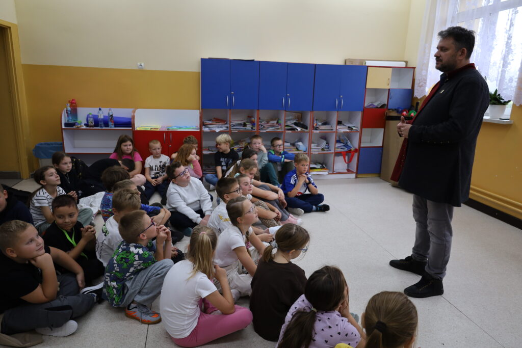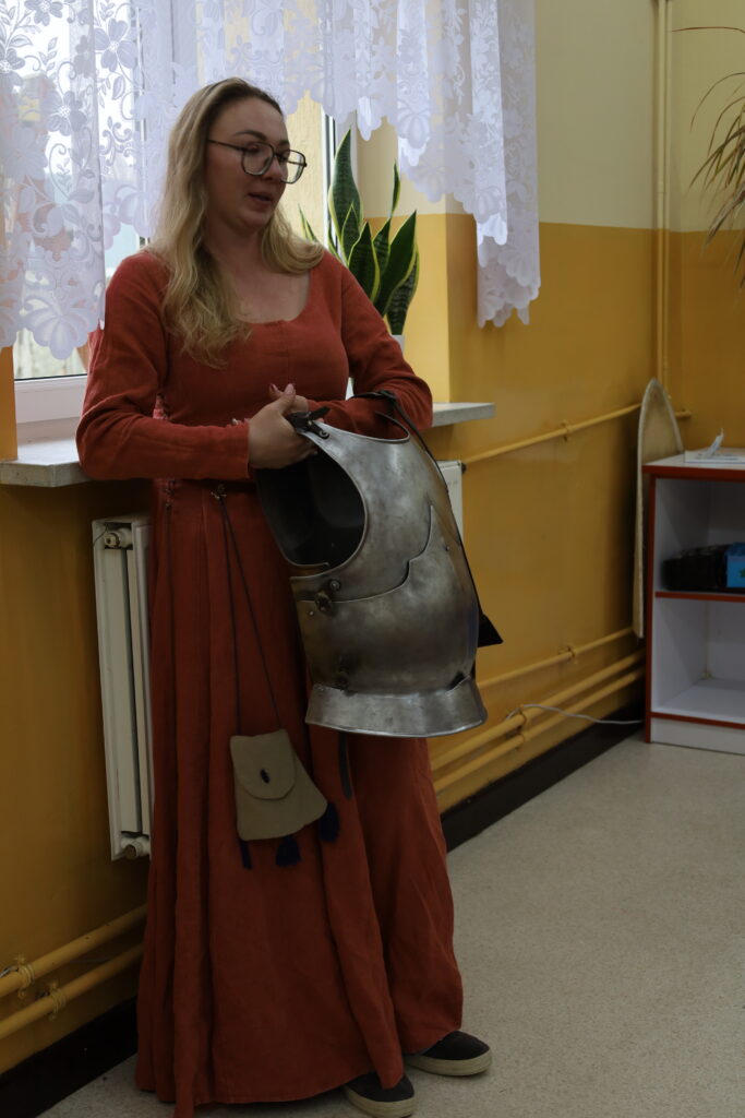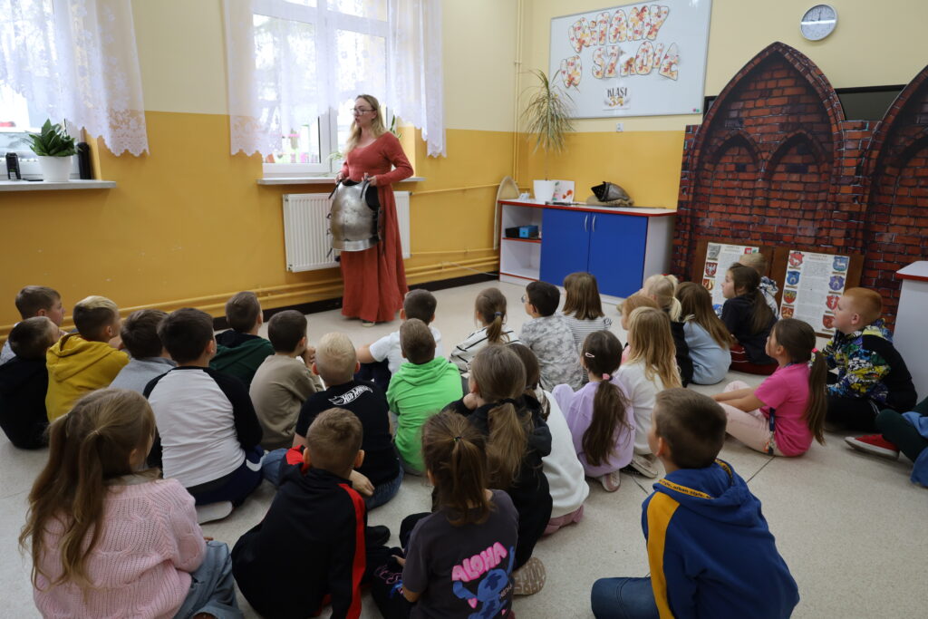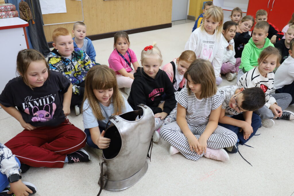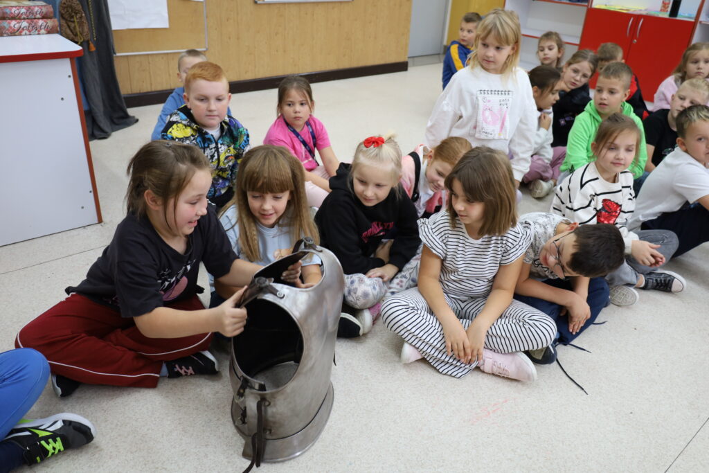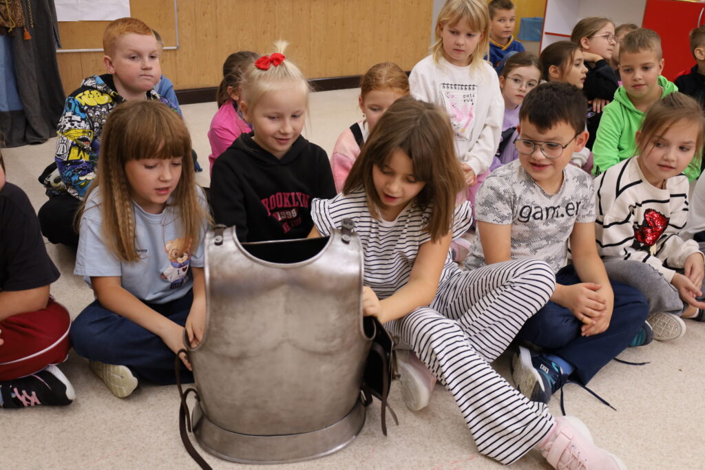 8 października uczniowie klas IIa, IIb oraz IV wzięli udział w niezwykłej „Żywej lekcji historii”. Była to wyjątkowa okazja, by przenieść się w czasy średniowiecza i na własne oczy zobaczyć, jak wyglądało życie dawnych rycerzy.