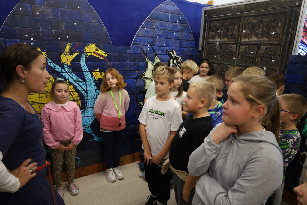W ramach zajęć dzieci miały możliwość obejrzenia i przymierzenia elementów rycerskiego uzbrojenia, poznały ciekawostki o zwyczajach panujących na dworach królewskich oraz wysłuchały legendy o smoku, która wzbudziła ogromne zainteresowanie.