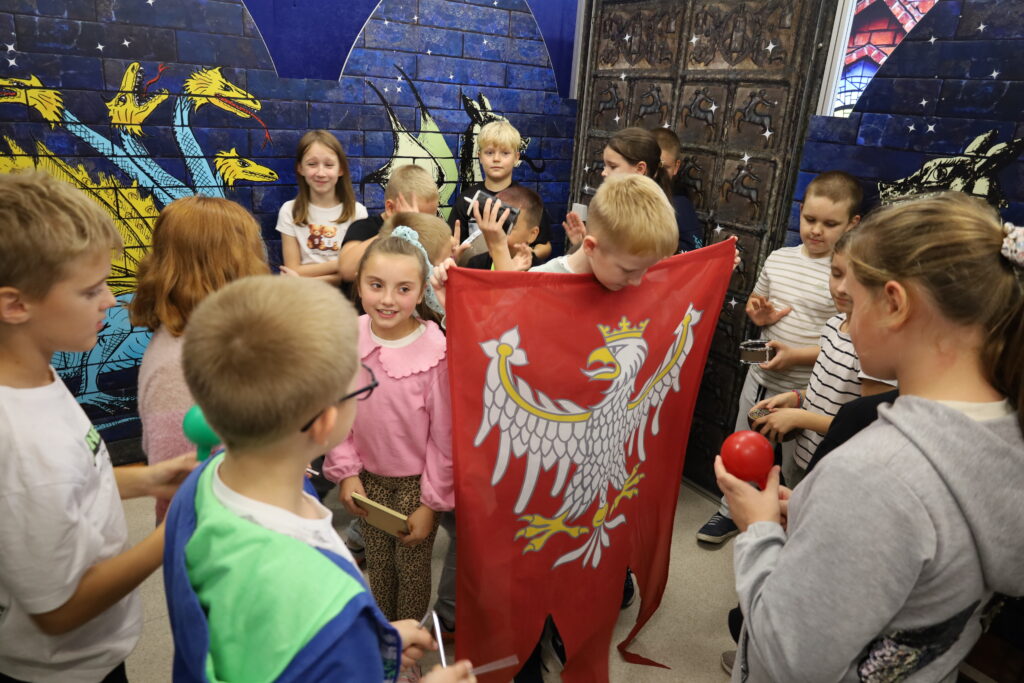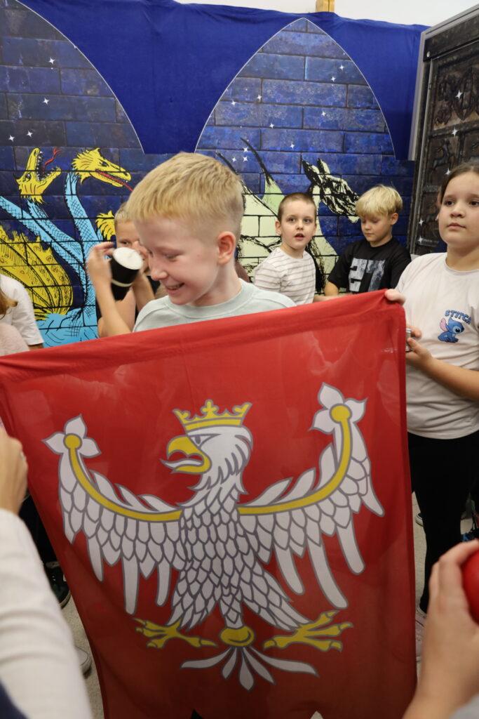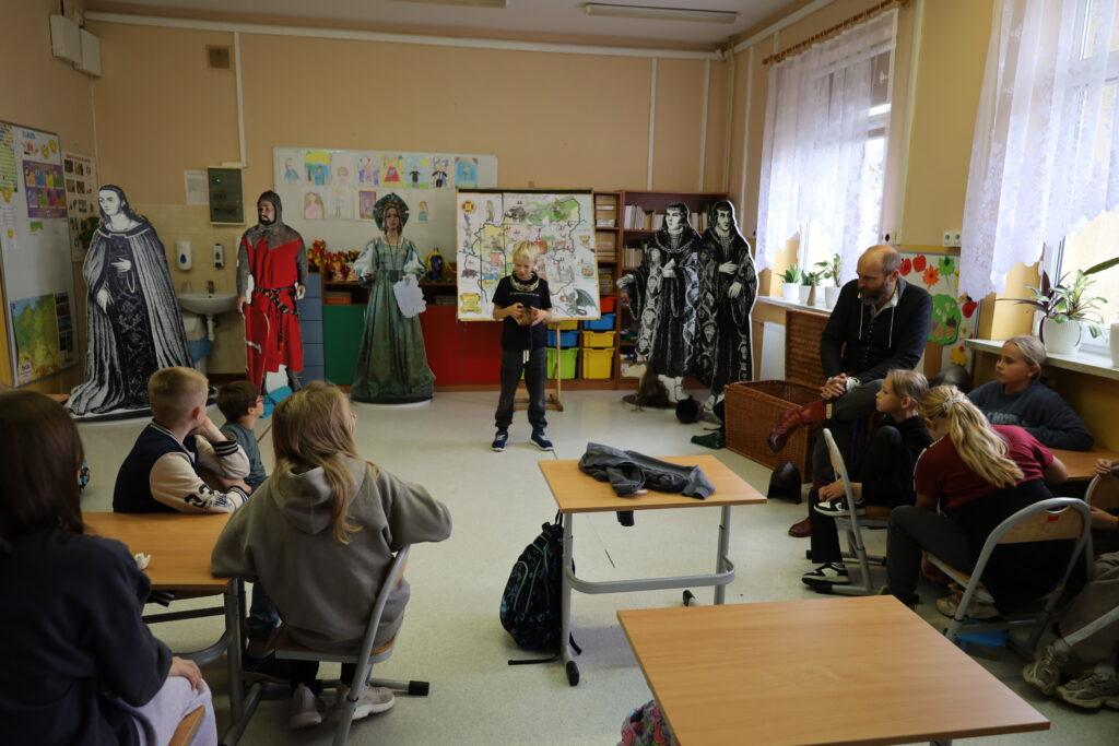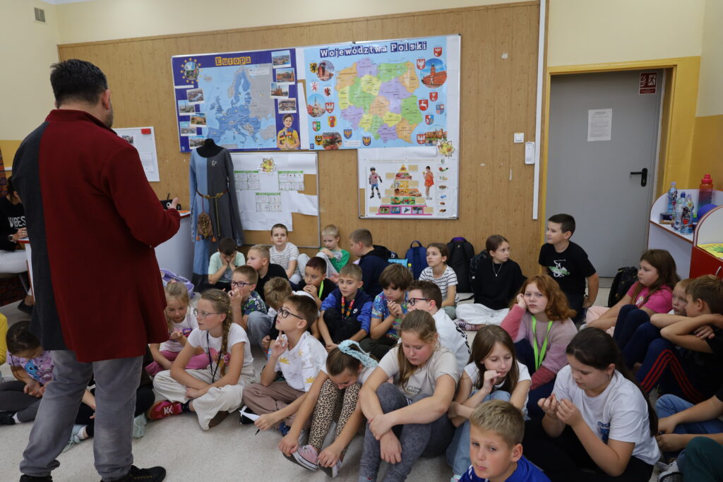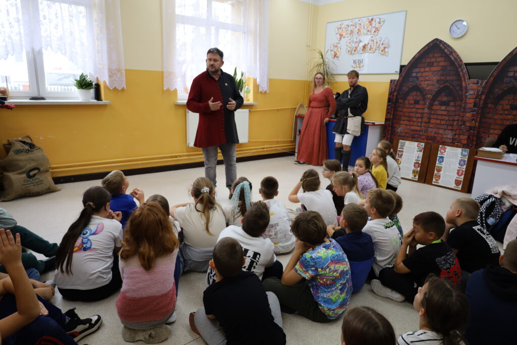 Nie zabrakło także teatrzyku historycznego, przygotowanego wspólnie przez uczniów. Wcielając się w dawne postacie, dzieci z entuzjazmem odtworzyły scenki z życia średniowiecznego grodu.
