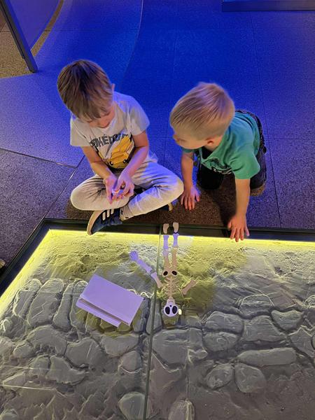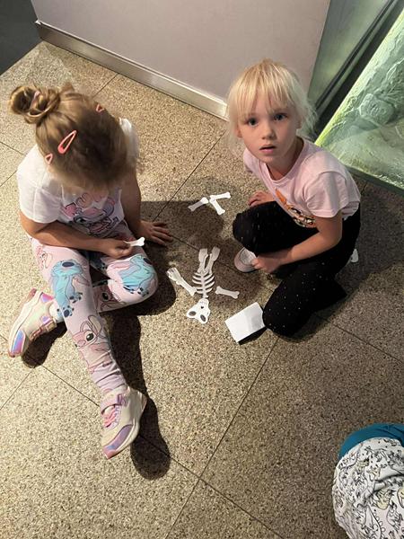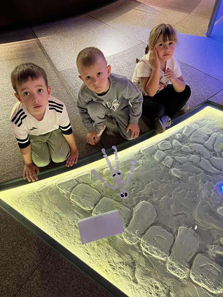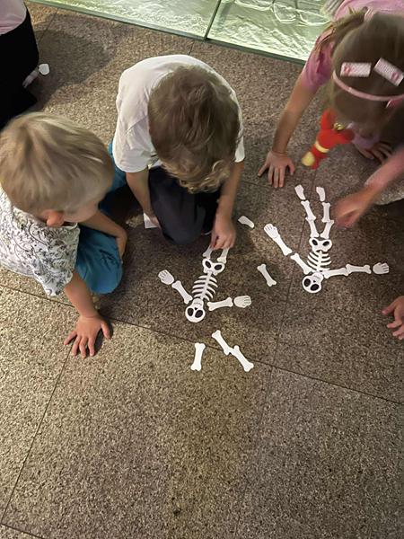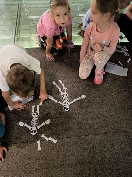 Podczas zajęć dzieci zostały podzielone na dwie grupy. Tygryski bawiły się w podchody na wystawie „X wieków Płocka”, gdzie mogły zobaczyć m.in. wioskę słowiańską oraz makietę Płocka, która wzbudziła ich ogromne zainteresowanie. Najwięcej emocji dostarczyło układanie szkieletu człowieka. Dzieci w każdym z pomieszczeń wyszukiwały odpowiedzi na zagadki zadawane przez prowadzącą, doskonaląc w ten sposób spostrzegawczość wzrokową.