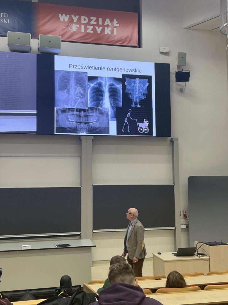 Na wykładzie zgłębiliśmy tajniki działania lampy rentgenowskiej, sposób powstawania obrazu oraz zjawiska fizyczne towarzyszące prześwietleniom. Nie zabrakło też rozmów o bezpieczeństwie i skutkach ubocznych promieniowania jonizującego.