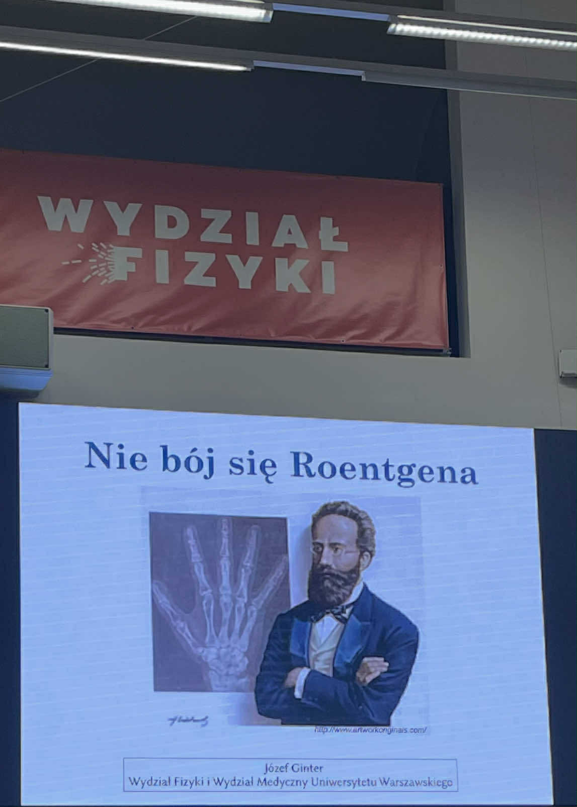Podczas spotkania poznaliśmy fascynującą historię odkrycia promieniowania X przez Wilhelma Roentgena w 1895 roku — wydarzenia, które zapoczątkowało rozwój współczesnych metod obrazowania wnętrza ludzkiego ciała. Dowiedzieliśmy się, jak wysokoenergetyczne promieniowanie elektromagnetyczne przenika przez materię, pozwalając zobaczyć to, co niewidoczne gołym okiem.